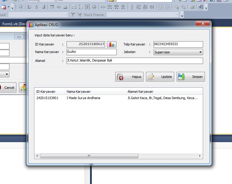 selamat sore para sahabat blogger semuanya, kembali lagi bersama saya guzko di blog yang sederhana ini. Kali ini saya akan sharing tentang bagaimana membuat aplikasi CRUD (Create, Update dan Delete) pada database ms access dan VB.Net, sesuai dengan judulnya gan. Barangkali saja ada agan agan yang lagi membutuhkan referensi, hehe... mudah-mudahan tutorial ini bermanfaat....